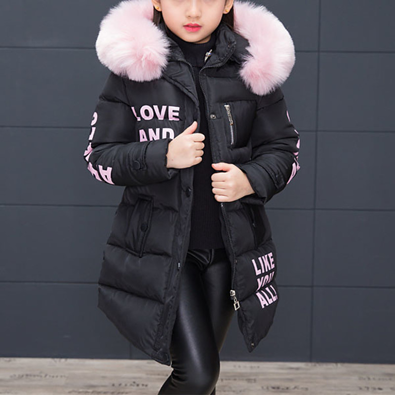 Girls' 3D Kids Puffer Jacket Letter Down Coat Jacket Puffer Jacket Long Sleeve Fall Winter Active Kids 3-12 Years School Daily