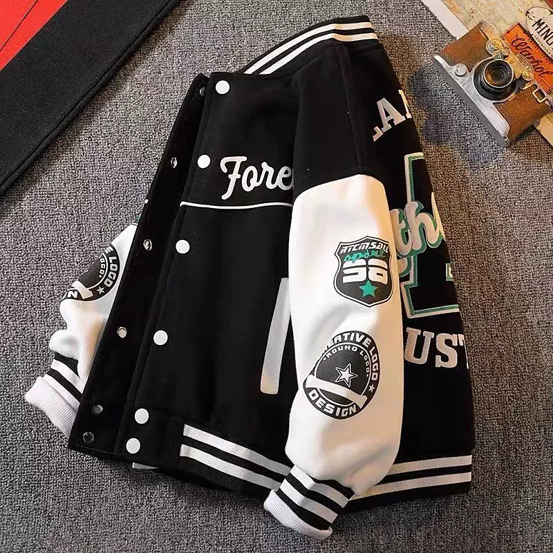 Kids Unisex Baseball Jackets Outerwear Color Block Long Sleeve Comfort Buttons Soft Coat Outdoor Fashion Daily Black Green Spring Fall 4 years