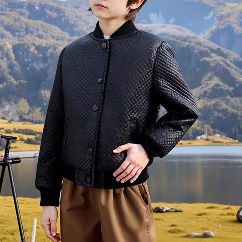 Kid's Boys' Black Leather Jacket Jacket Outerwear Plain Long Sleeve Zip Up Waterproof Windproof Coat Daily Fashion Casual Black Brown Beige Spring Fall 4-12 Years