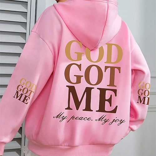 Per donna Felpa con cappuccio Felpe con cappuccio Grafico Semplice Lettera Elegante Caldo Moda Manica Lunga Con Cappuccio Top Regolari Casa Lavoro Abbigliamento Quotidiano Stampato Nero Bianco Rosa