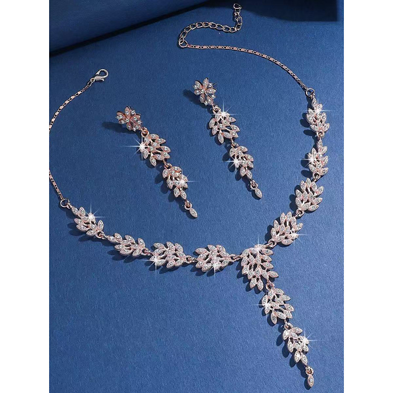 Women's Gold Rhinestone Leaf Necklace and Earring Set - Elegant Sparkly Jewelry for Party and Evening Occasions