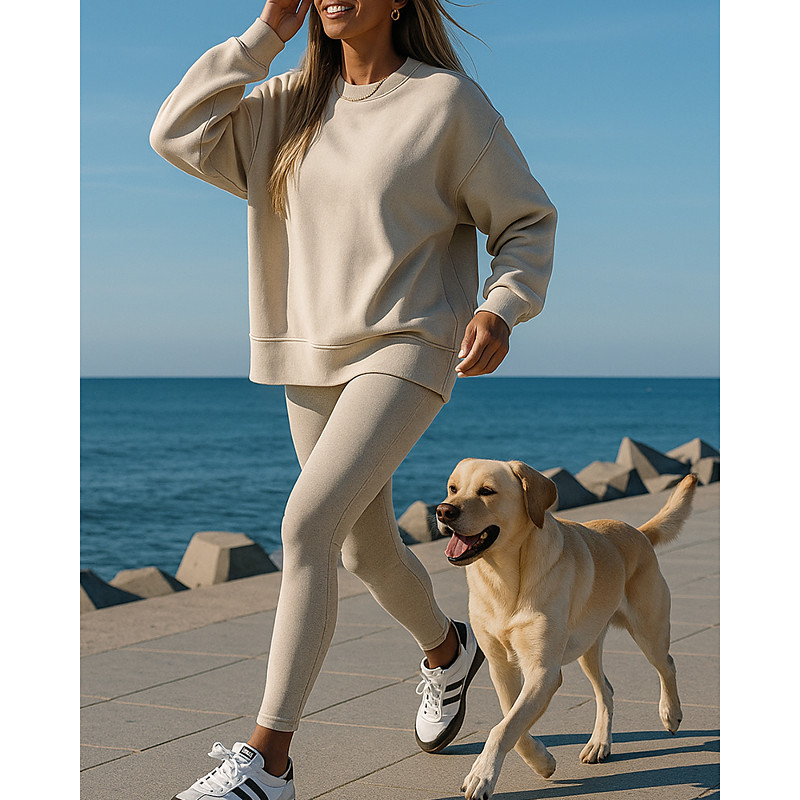 Women's Tracksuit Pullover Sweatshirt Track Leggings Solid Colored Clothing Suit Fall Winter Apricot Hiking Workout Athletic Windproof Lightweight Moisture Wicking Long Sleeve Sport Activewear