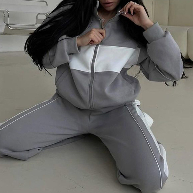 Women's Tracksuit Sweatpants Track Pants Zipper Pocket Solid Colored Clothing Suit Spring Dark Grey Black Gym Training Running Windproof Long Sleeve Sport Activewear Micro-elastic Regular Fit