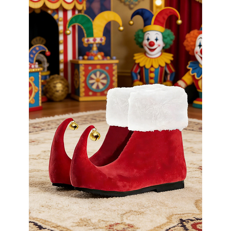 Women's Green Velvet Curled Toe Elf Boots with Jingle Bells Novelty Furry Cuff Shoes for Carnival Party, Cosplay Holiday Costumes