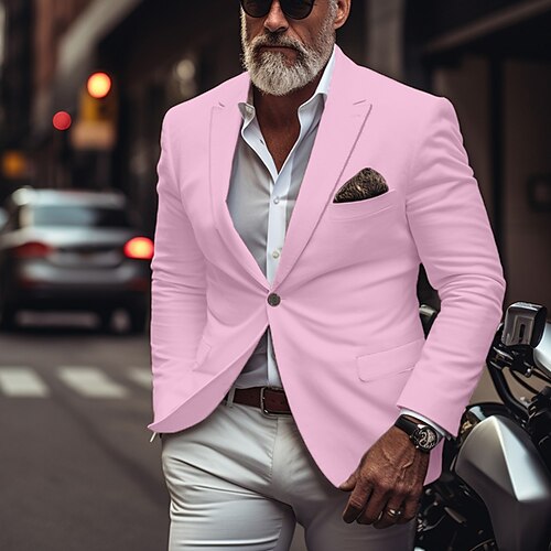 Per uomo Giacca Attività commerciale Cocktail party Ricevimento di matrimonio Di tendenza Informale Primavera Autunno Poliestere Tinta unica Pulsante Tasche Comodo Monopetto Giacca Rosa chiaro