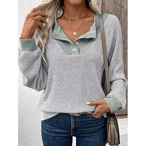 Per donna Blusa Tinta unica Elegante Casual Manica Lunga Scollo a V Top Regolari Quotidiano Blu Nero Grigio Primavera Autunno Inverno