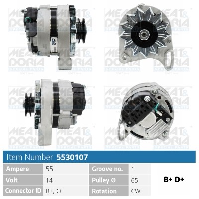 Laturi 14V 55A Meat & doria 5530107 - fiat panda, panda skåp/halvkombi, tipo, uno, lancia y10 - OE 46231660, 46419911, 7565832