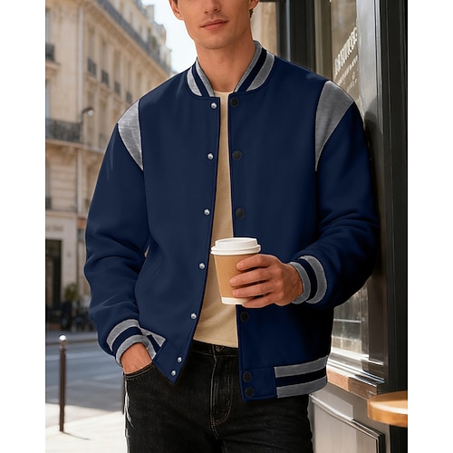 Per uomo Giacca Leggera Giacca Casual Giacca College All'aperto Vacanza Patchwork Tasca Primavera Autunno Blocco di colori Streetwear Elegante Collo alla coreana Regolare Grigio scuro Nero Vino Blu
