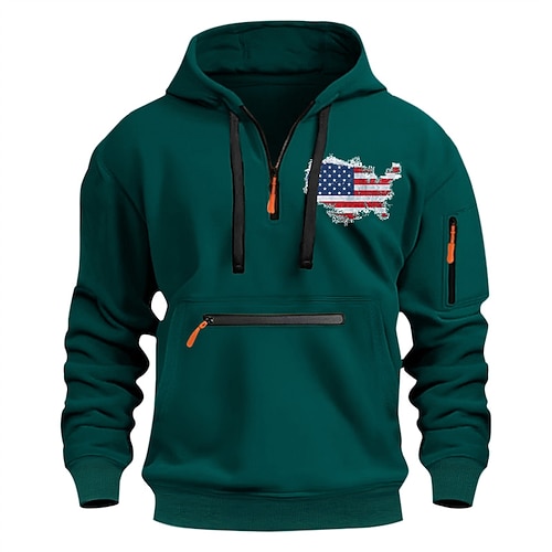 Per uomo Felpa con cappuccio Maglione Felpa con cappuccio e zip corta Blu Nero Vino Blu marino Cammello Con Cappuccio Bandiera Americana Tasca Stampato Quotidiano Sport Outdoor Ferie Streetwear