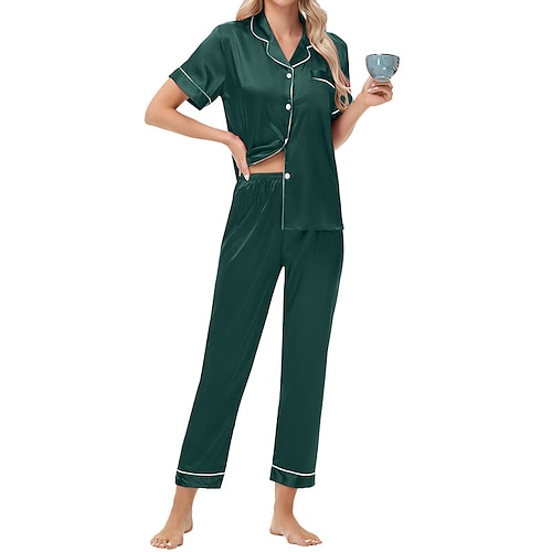 Per donna Abbigliamento da Casa Set Pigiama Moda Casual Morbido Colore Puro Patchwork Elastico in vita Bottoni Pantalone Casa Vacanza Manica Corta Bavero Nero Champagne Rosa Vino Verde Estate