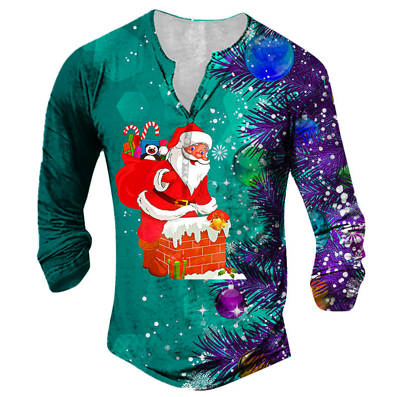 Christmas Sweater Mens Graphic Shirt Tee Henley Santa Claus Red Royal Blue Purple Brown 3D Print Outdoor Long Casual Green Cotton