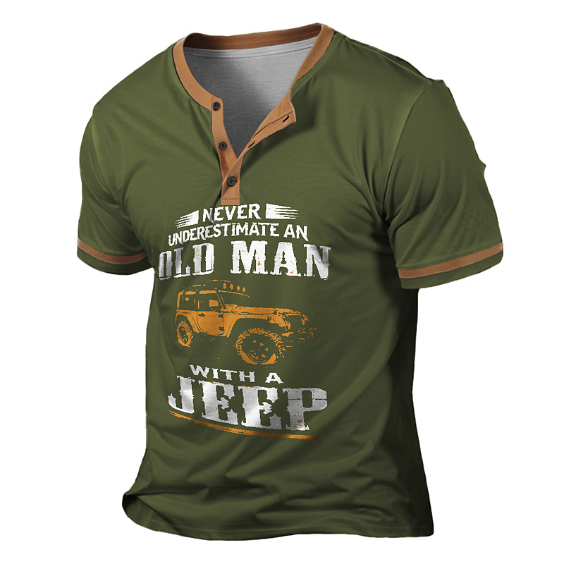 Men's T shirt Tee Henley Shirt Graphic Tee Slogan T Shirts Templar Cross Soldier Henley Navy Blue Blue Green Gray 3D Print Plus Size Outdoor Daily Short Sleeve Patchwork Button-Down Clothing Apparel