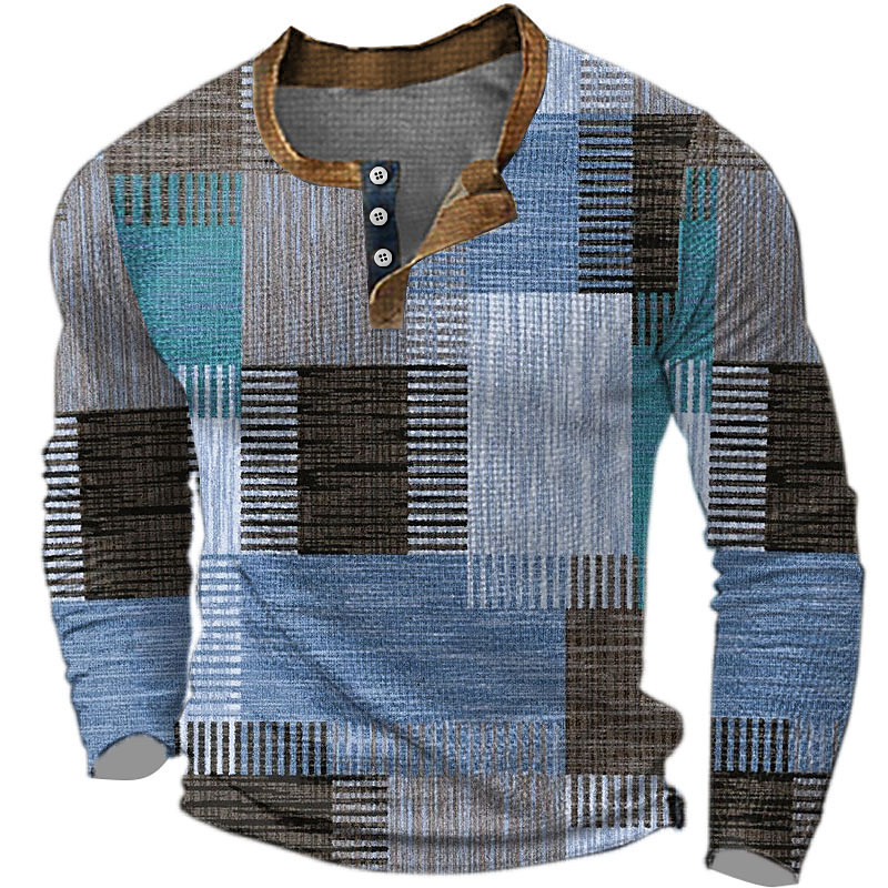 Men's Graphic Color Block Waffle Henley Shirt Casual Style Classic Style Long Sleeve 3D Print Fashion Designer Basic Outdoor Daily Spring Fall Blue Brown Green Gray Henley Henley T-Shirt