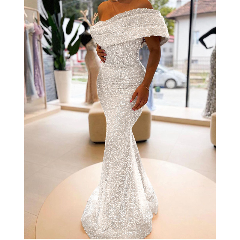 Mermaid Trumpet Floor Length Prom Dresses Evening Gown Ball Gown Formal Dress Elegant Sparkle Sleeveless Off Shoulder Formal Sequined with Sequin