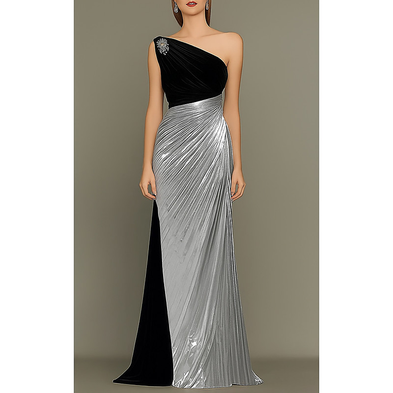 Sheath Column Floor Length Prom Dresses Evening Gown Ball Gown Formal Dress Elegant Silky Sleeveless One Shoulder Wedding Formal Champagne Mother Of the Bride Dress Satin with Rhinestone Pleats