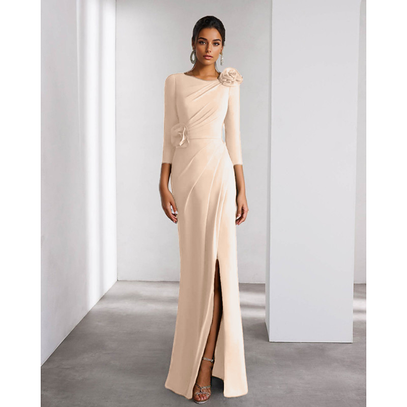 Sheath Column Floor Length Prom Dresses Evening Gown Ball Gown Formal Dress Elegant Vintage Silky 3/4 Length Sleeve Crew Neck Wedding Formal Stretch Crepe with Pearls