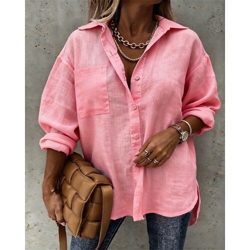 Per donna Camicia Blusa Top Eleganti Tinta unica Semplice Elegante Vintage Quotidiano Manica Lunga Colletto a Camicia Top Regolari Quotidiano Lavoro Ferie Arricciato Tasca Bottoni Bianco Rosa Azzurro