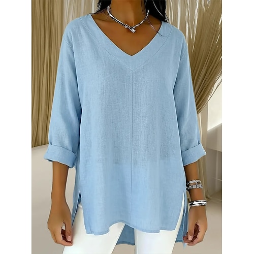 Per donna Blusa Tinta unica Elegante Essenziale Casual Manica Lunga Scollo a V Top lunghi Quotidiano Lavoro Blu Nero Bianco Rosa Rosso Estate Primavera Autunno Inverno