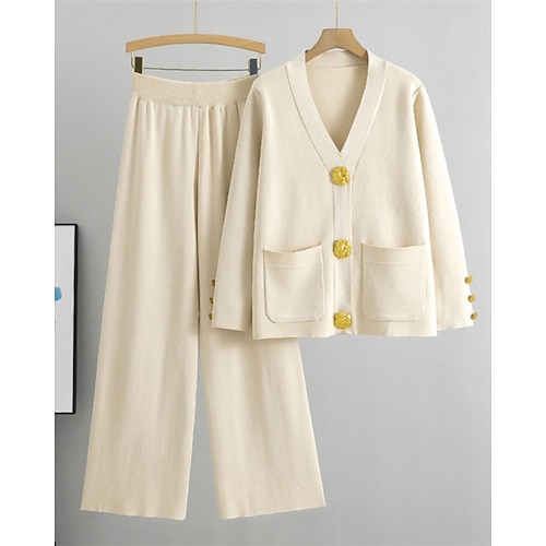 Per donna Felpa Cardigan Coordinato maglione Streetwear Casual Tinta unica Scollo a V Tasca Bottoni Lavorato a maglia Manica Lunga Top Regolari Maglia Quotidiano Ferie Uscire Rosso bordeaux Nero