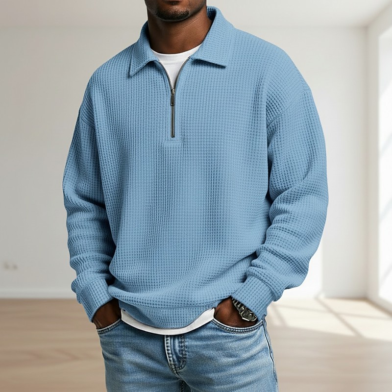 Men's Waffle Polo Shirts Textured Casual Outdoor Zip Quarter Zip Long Sleeve Fashion Modern Solid Color Textured Knitted Spring Fall All Seasons Relaxed Fit Black Dark Green Purple khaki Dark Blue