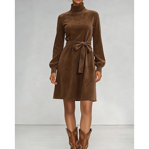 Per donna Mini Abito Abito con Cappuccio Vestito Casual Elegante Vintage Moda Manica a Lanterna Quotidiano Uscire Weekend Vestibilità regolare Semplice Manica Lunga Dolcevita Marrone Primavera