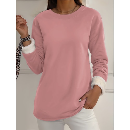 Per donna Pigiama felpato foderato in pile Felpa Pullover Pullover Felpe Semplice Caldo Streetwear Casual Manica Lunga Girocollo Top Regolari Casa Abbigliamento Quotidiano Casuale Stampato Nero