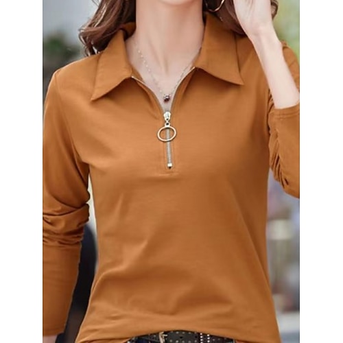 Per donna Blusa Semplice Elegante Moderno Casual Manica Lunga Colletto a Camicia Top Regolari Quotidiano Cerniera Nero Giallo Rosa Verde Primavera Autunno Inverno