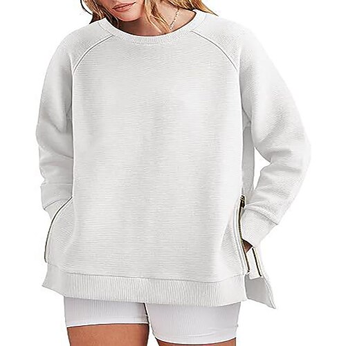 Per donna Felpa Pullover Semplice Streetwear Casual Manica Lunga Girocollo Top Regolari Streetwear Abbigliamento Quotidiano Cerniera blu navy Nero Bianco Verde Kaki Primavera Autunno Inverno
