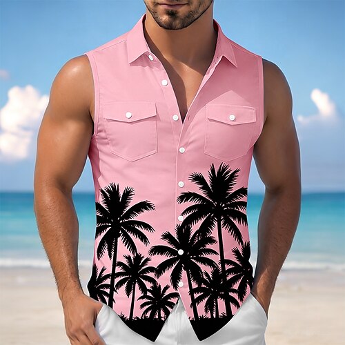 Per uomo Albero di Cocco Piante Tropicali Camicia Camicia hawaiana estiva Camicia Aloha Senza Maniche Resort Vacanza al Mare Estate Primavera Collo ripiegato Stampa 3D Due tasche anteriori Camicie