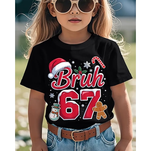 Cotone Natale Bambini Ragazze Nero Grafico Cappellino di Nalate Gergo divertente 67 Maglietta Girocollo Manica Corta Vacanza Sport Outdoor Abbigliamento Quotidiano Canotta sportiva Designer Casual