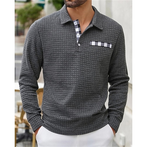 Per uomo Magliette Polo a Nido d'Ape Polo Casuale Streetwear Bavero Manica Lunga Essenziale Moderno Blocco di colori Bottoni Primavera Autunno Vestibilità regolare Grigio scuro Nero Bianco Blu marino