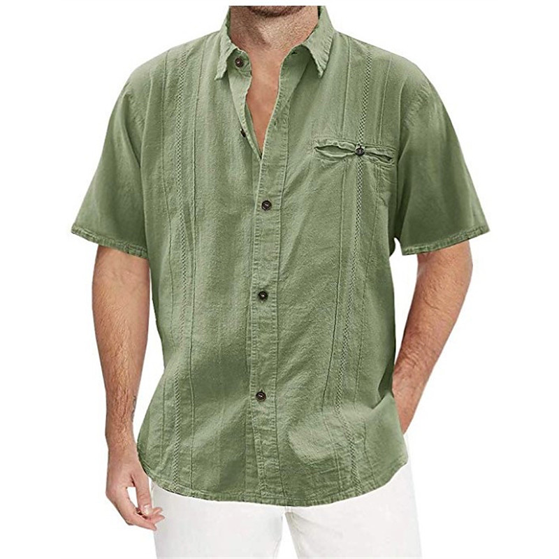 Men's Shirt Cotton Linen Shirt Casual Shirt Plain Vacation Casual White Green Khaki Short Sleeve Lapel Summer Clothing Apparel Pocket