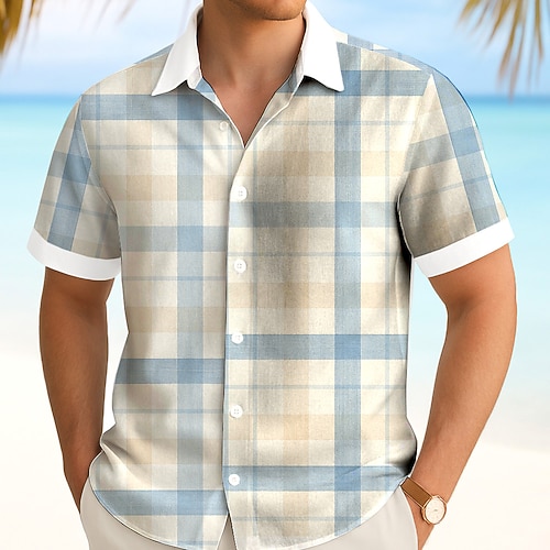 Per uomo Geometrico Motivi a griglia / plaid Camicia Camicia Estiva Camicia con Bottoni Manica Corta Moda Casual All'aperto Vacanza Abbigliamento Quotidiano Estate Primavera Collo ripiegato Stampa 3D
