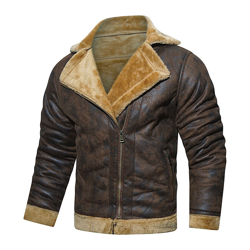 Men's Faux Leather Jacket Fleece Jacket Biker Jacket Motorcycle Jacket Vacation Daily Windproof Warm Pocket Winter Plain Fashion Classic Lapel Regular Black Coffee Jacket