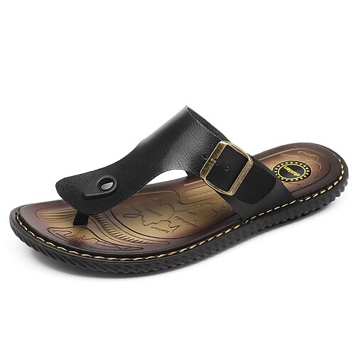 Per uomo Sandali Sandali in pelle Taglie forti Scarpe fatte a mano Scarpe comfort Footing Informale Spiaggia Pelle Traspirante Mocassino Fibbia Marrone scuro Nero Marrone Estate Primavera