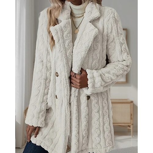 Per donna Cappotto Invernale Giacca Sherpa Caldo Confortevole Bottoni Elegante Moda Casual Semplice Vacanza Streetwear Casuale Abbigliamento quotidiano Monopetto Lungo Collo ripiegato Vestibilit