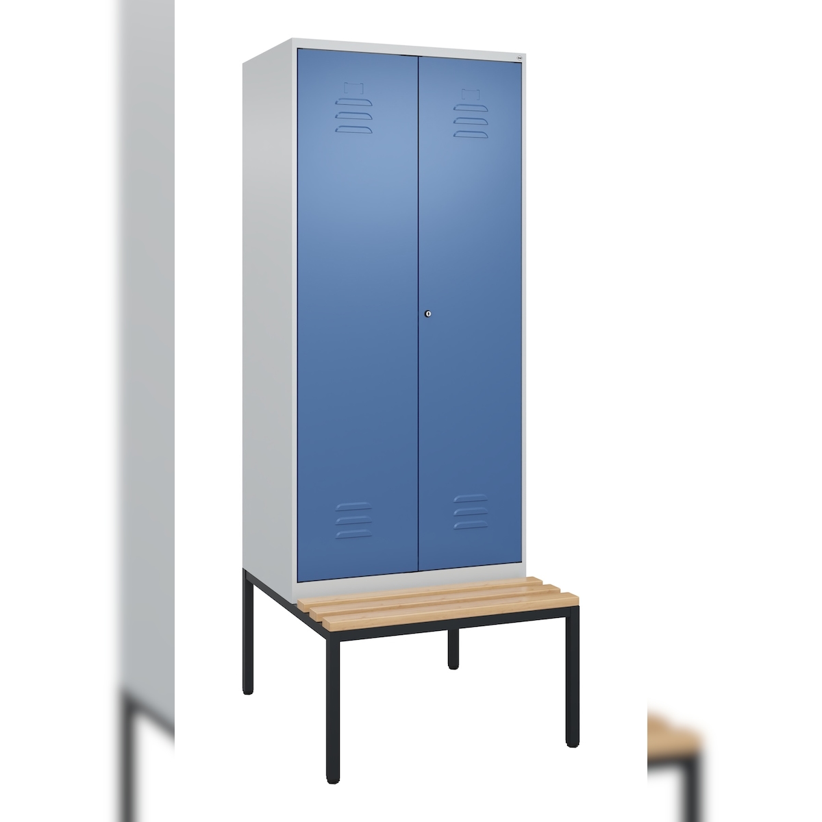 C+P Doppel-Spind Classic PLUS, schwebender Sitzbank aus Buche 2 Abteile, HxBxT 212x80x82cm, Zylinderschloss, Hellgrau/Enzianblau von PROREGAL