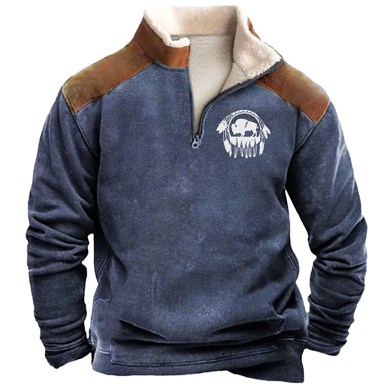 Men's Graphic Cowboy Sweatshirts Sweatshirt Zip Sweatshirt Long Sleeve Sweatshirt Quarter Zip Daily Casual Vintage Retro 3D Print Vacation Holiday Going out Print Fleece Fall Winter