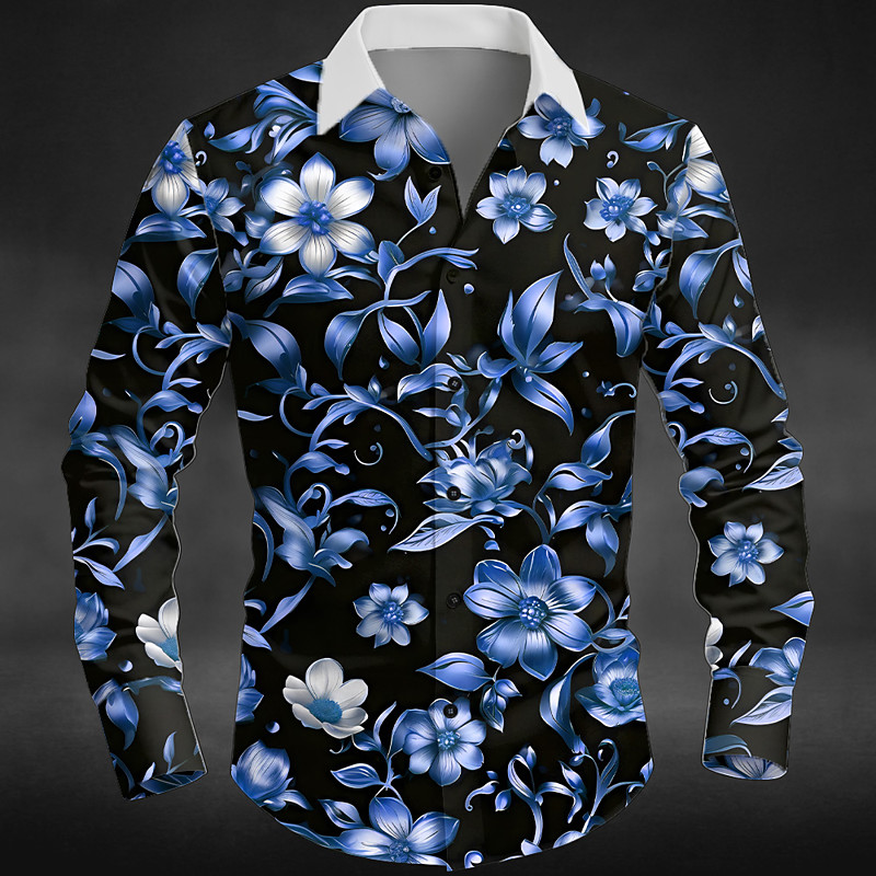 Men's Floral Print Flowers Shirt Button Up Shirt Long Sleeve Vintage Retro Outdoor Casual Holiday Spring Fall Turndown 3D Print Collared Shirts Pink Blue Gold