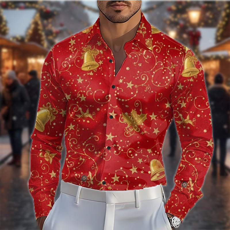 Christmas Men's Floral Print Christmas Baubles Shirt Satin Shirt Dress Shirt Long Sleeve Fashion Casual Outdoor Holiday Spring Fall Turndown 3D Print Button Up Shirts Red Purple Rose Red