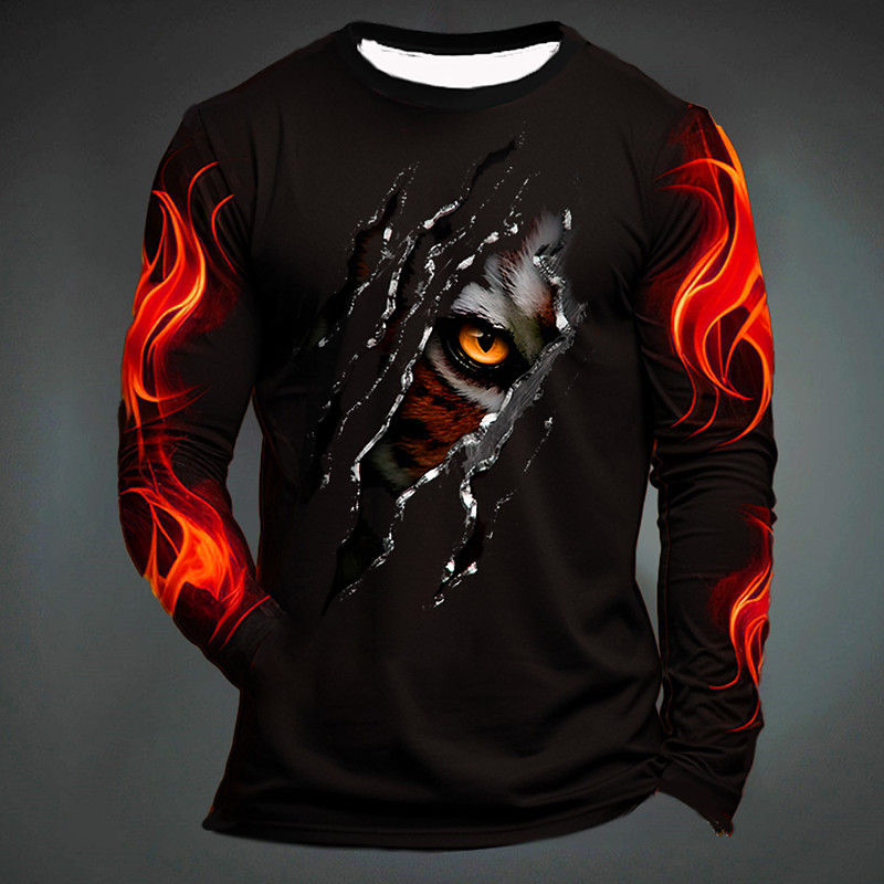 Men's Graphic Hellfire Flames Flame Paw T Shirt Long Sleeve T shirt 3D Print Crew Neck Shirt Fashion Designer Casual Sports Outdoor Holiday Going out Black Yellow Dark Green Spring Fall Clothing