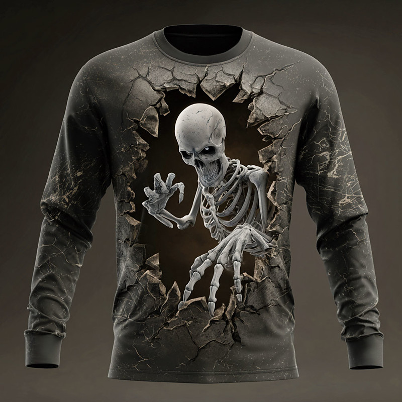 Halloween Men's Grim Reaper Skeleton T Shirt Long Sleeve T shirt 3D Print Crew Neck Shirt Fashion Exaggerated Street Casual Daily Yellow Green Dark Blue Summer Spring Fall Clothing Apparel S M L XL