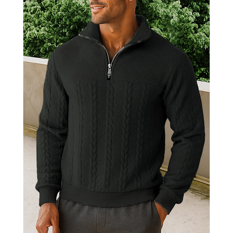 Men's Casual Tops Knitted Sweatshirt Quarter Zipper Cable knit Long Sleeve Top Athleisure Solid Colored Fashion Warm Outdoor Travel Sports Sportswear Activewear Black White Khaki