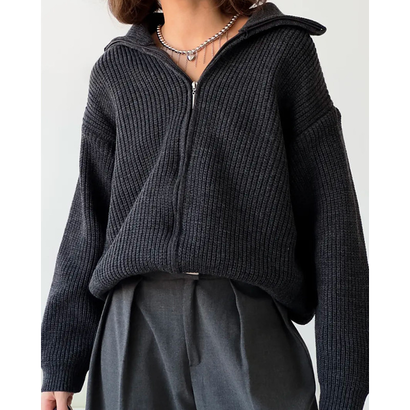Women's Sweater Cardigan Streetwear Casual Solid Color Stand Collar Zipper Knitted Long Sleeve Regular Tops Knit Daily Holiday Going out Black Red Fall Winter