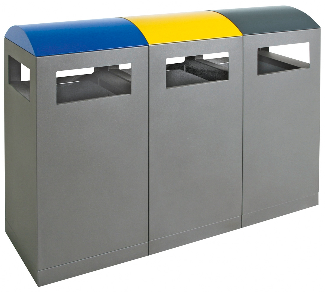 Abfalltrennung A³-3-fach Station, anthrazitgrau/5010, 1003, 7016, verz. Innenbehälter, 3x90 Liter