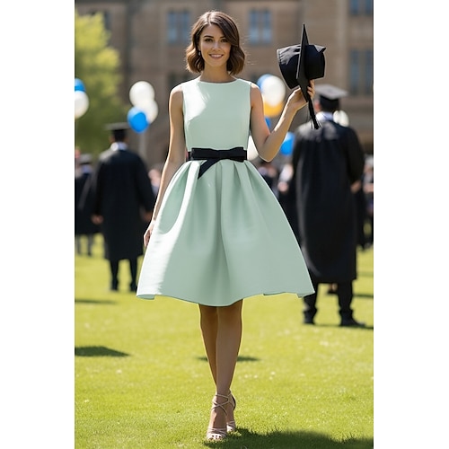 Linea ad A Lunghezza al ginocchio Abito da Ballo Vestito da Festa Abito da Cocktail Abiti da Ballo Elegante Festa Senza Maniche Scollo a Barca Ritorno a casa Cocktail party con Fiocco/Fiocchi
