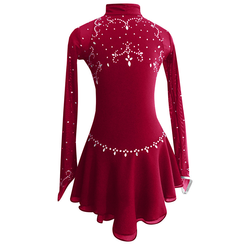 Figure Skating Dress Women's Girls' Ice Skating Dress Outfits Dark Purple Dark Red Fuchsia Elastane Outdoor clothing Practice Competition Skating Wear Handmade Classic Long Sleeve Ice Skating Figure