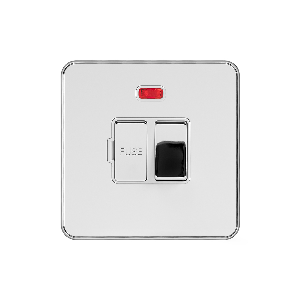 Soho Lighting White Metal with Polished Chrome 13A Double Pole Switched Fused Connection Unit (FCU) With Neon with Screwless - Size: 86mm x 86mm x 4.