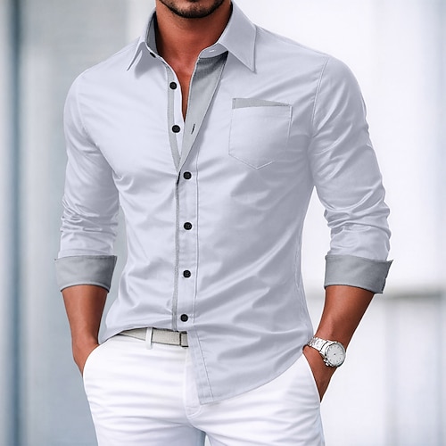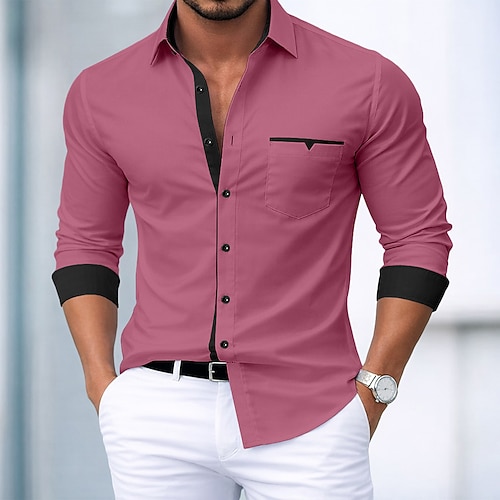 Per uomo Camicia Camicia elegante Camicia button-down Blocco di colori Quotidiano Affari Blu chiaro Nero Bianco Rosa Manica Lunga Collo ripiegato Tutte le stagioni Abbigliamento Patchwork