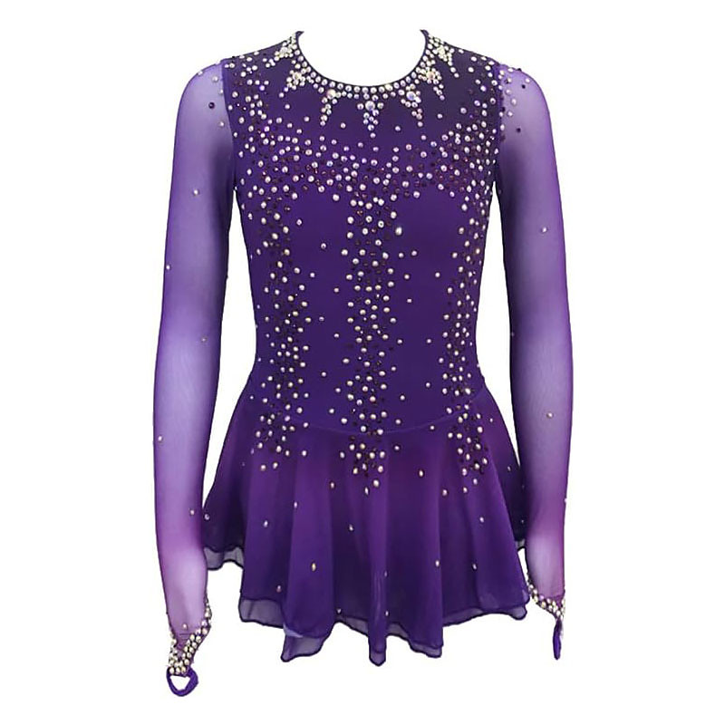 Girls' Purple Long Sleeved Figure Skating Dress with Rhinestone Decoration Competition Costumes